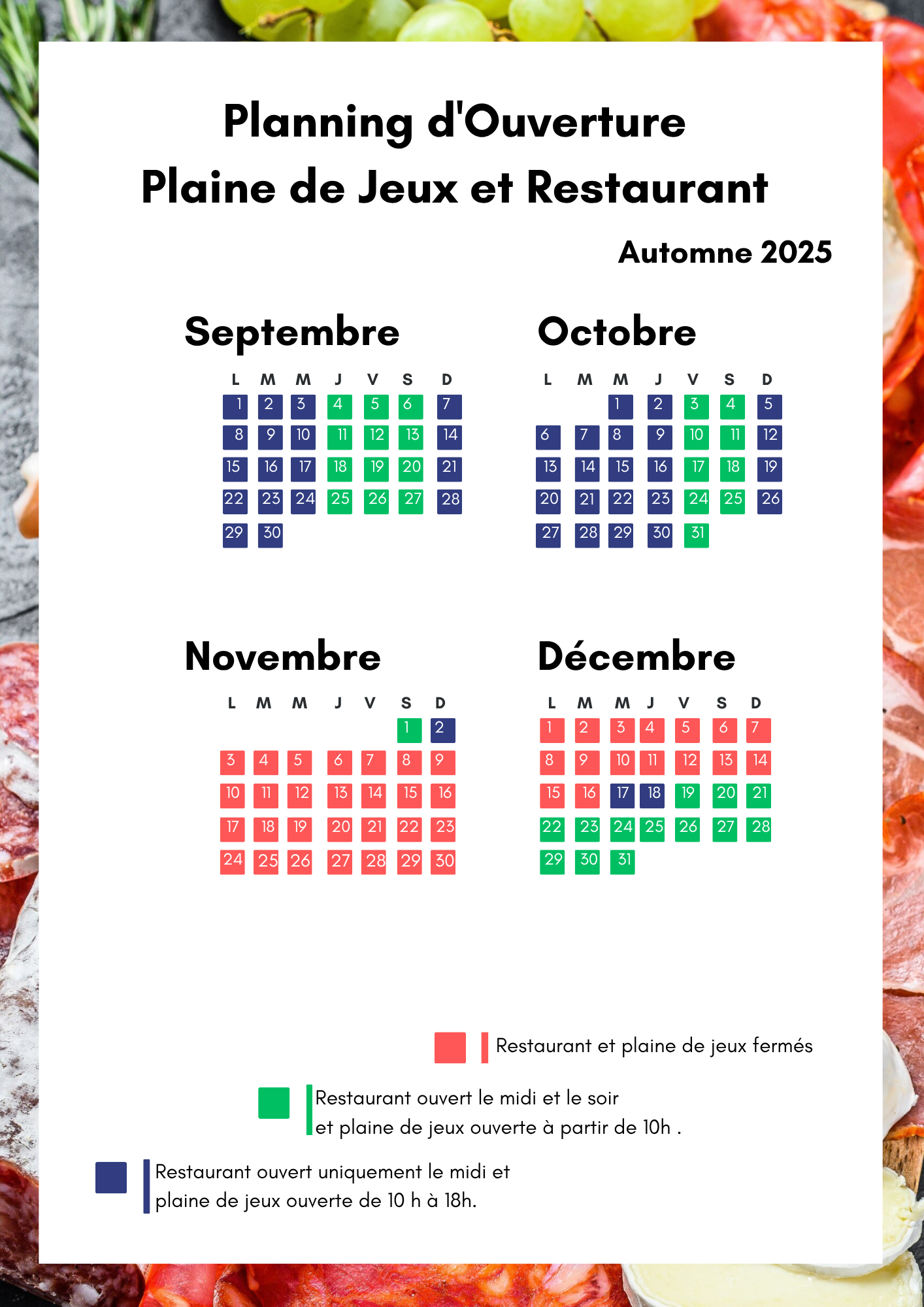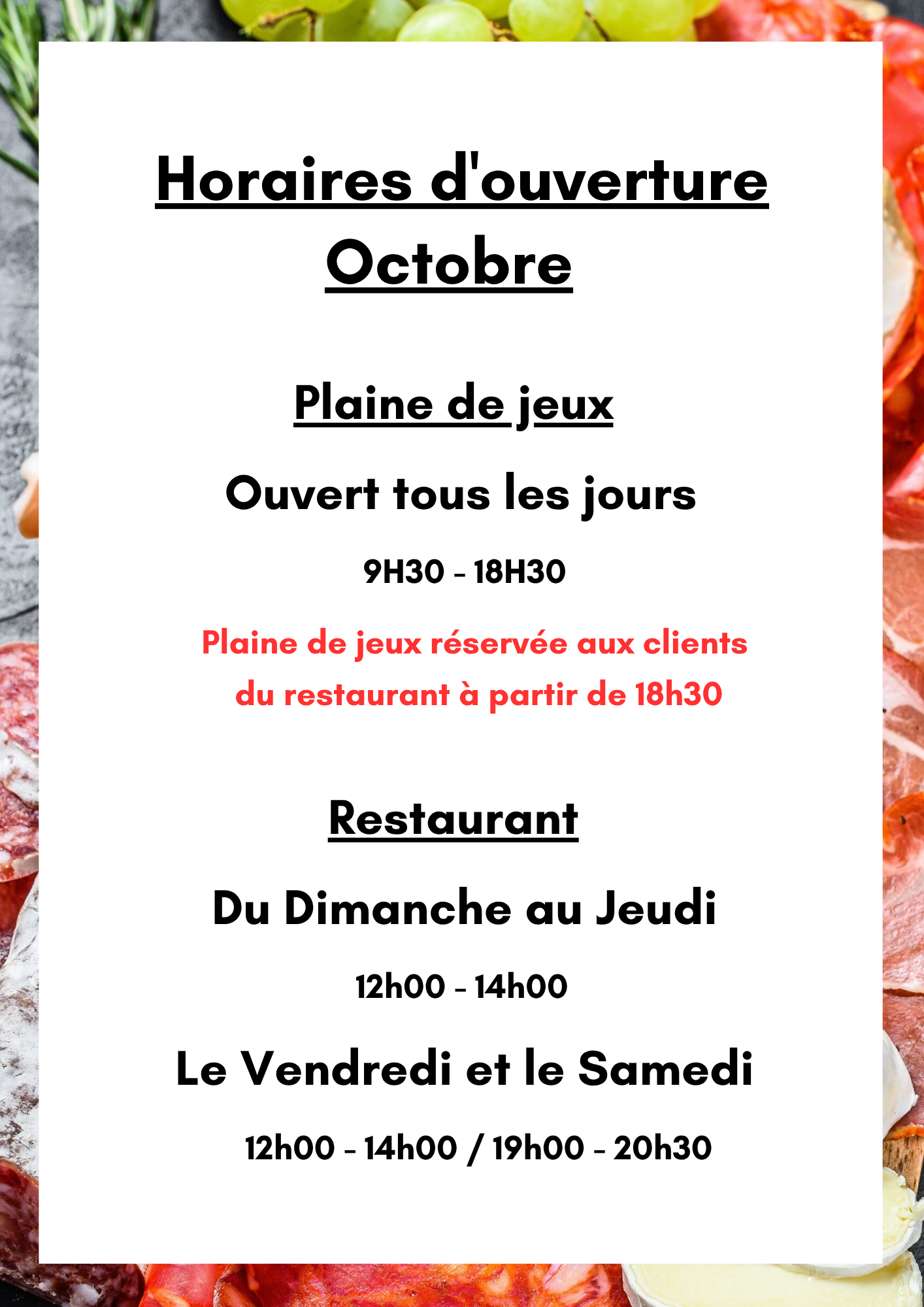 Les clients du restaurant peuvent accéder à tarif préférentiel à la Plaine de Jeux ainsi qu’aux trampolines, y compris lorsque ces espaces sont fermés aux public. Valable uniquement pendant les horaires d’ouverture du restaurant.